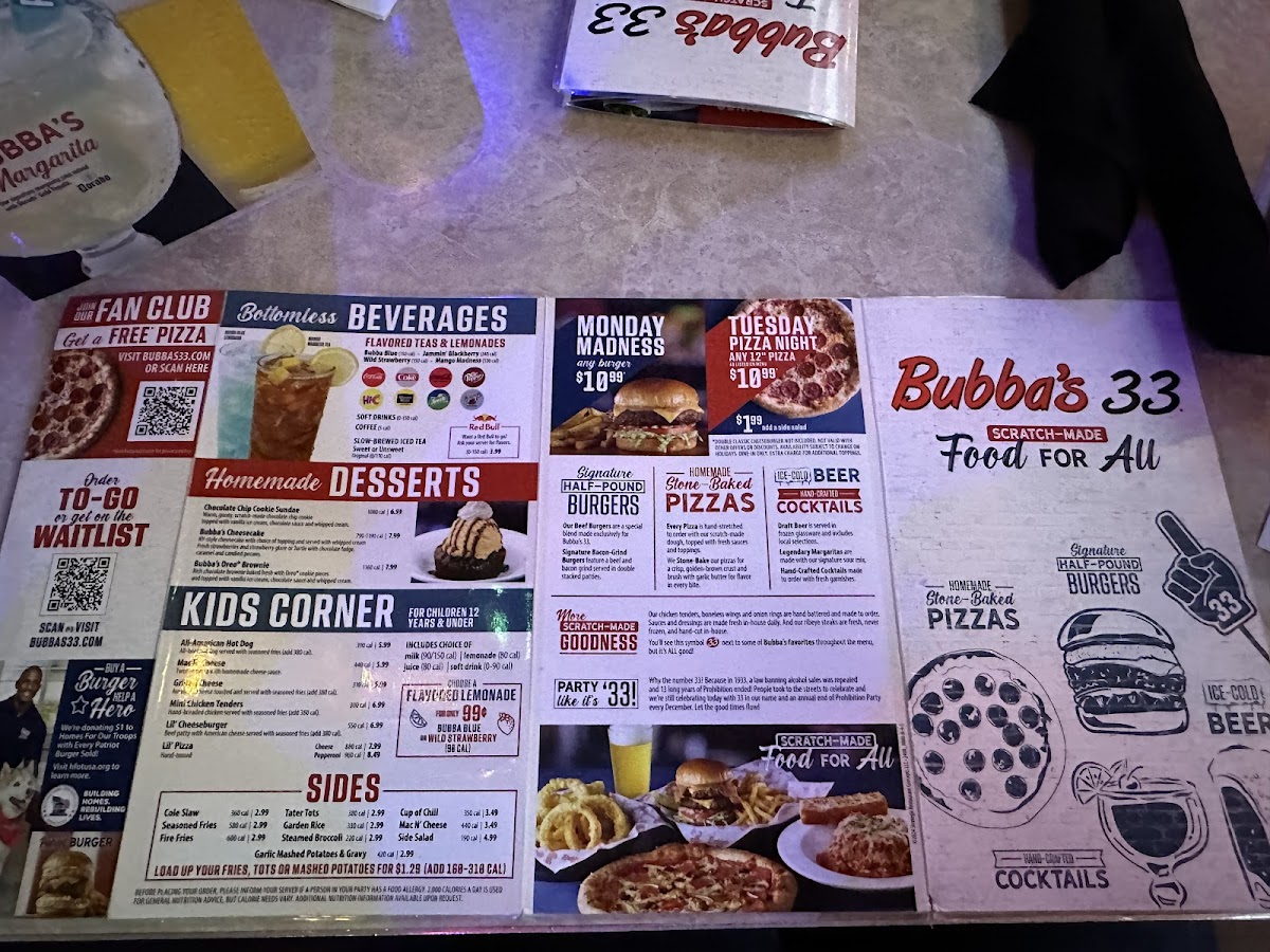 Bubba's 33 offers a menu that strikes a comfortable balance between classic American fare and casual sports bar favorites. The selection is straightforward and approachable, featuring comforting dishes that pair well with the laid-back atmosphere. Whether you're settling in for a game or catching up with friends, the menu lends itself to relaxed, easygoing dining moments.